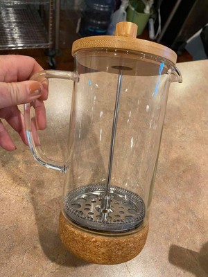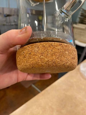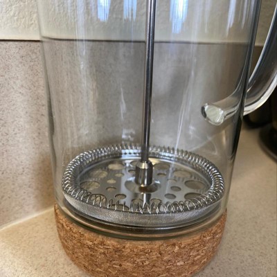 I purchased one of these at the beginning of the year because I was very excited to have a French press without any plastic components. I was very sadly disappointed when the glass carafe just fractured into two pieces without warning. I got a replacement; that one also suddenly broke, after it got bumped on the side wall by cup. Other French presses I have owned are not made with glass nearly as thin as this; I purchased a better and plastic free French press from Caribou coffee eight years ago, and it lasted just fine until this year -- it even included a heavy stainless steel coffee scoop I could store in it without issues! I'm really sad this one did not work out. I love the cork bottom, the better screen compared to the caribou one I had, and everything else, but neither one I purchased even lasted long enough to really enjoy it. I really want to give this more stars and I am sad about this. Grosche: Let me know when you change your production to thicker glass? At least the cork base miraculously fits one of the only mugs I have like a glove...? Now it's my portable coaster.