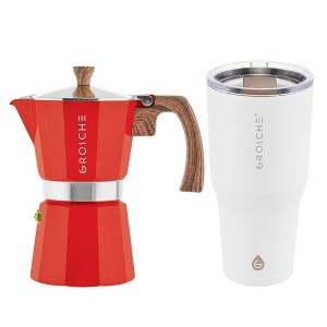 Experience the ultimate coffee convenience with the Grosche Milano Brew and Go Set, featuring the Milano 9-Cup Moka Pot and the Yukon 30 oz Stainless Steel Tumbler. This bundle combines the rich, authentic flavor of stovetop espresso with the practicality of a high-capacity, insulated travel tumbler.The Milano 9-Cup Moka Pot, made from durable aluminum, offers even heat distribution for perfect brewing and a generous capacity for up to 9 cups of rich, aromatic espresso. It is simple to use, bringing the cafe experience right into your kitchen.Paired with the Yukon 30 oz Stainless Steel Tumbler, your coffee stays hot or cold for extended periods. The tumbler is double-walled insulation, secure spill-resistant lid, and stylish, durable design make it ideal for on-the-go enjoyment.Together, the Milano Moka Pot and Yukon Tumbler provide a seamless coffee experience, blending traditional brewing with modern convenience. Elevate your routine and enjoy the perfect cup of coffee wherever your day takes you