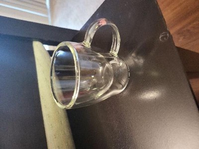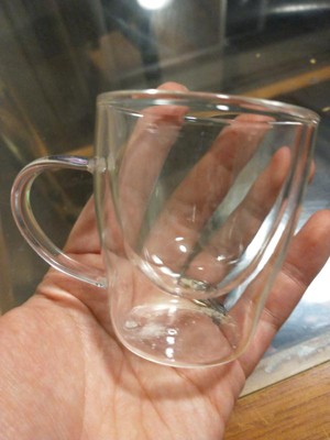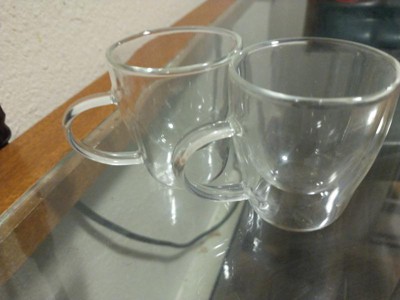 held a funeral for my very favorite cup of many years which had the sheer audacity to teeter over the edge of the counter... and bought this one - the grip is friendly to the hand and the rounded glass is easy on the fingers (no sharp edges) - the double wall provides some insulation, tho not as much as a heavy pottery cup - it holds more than you’d think....it fully drains my Hot Shot water dispenser - it’s surprisngly sturdy...the double wall looks more fragile than it apparently is - the clear sides leave no doubt about cleanliness of the cup! — uit cleans up very easily with a plastic scrubby and drop of soap - the second cup is a ready backup — also can function as a soup repository