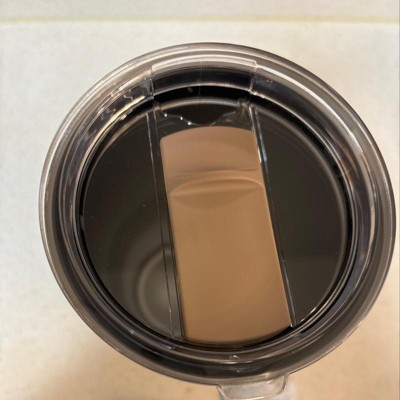 Absolutely in love with this drink tumbler! I love the sleek design & color…..it is not a stark white, but a very pretty soft white. The plastic topper piece is a mocha color- just a gorgeous combination of colors, giving a very upscale-feel & look for the reasonable price I paid!