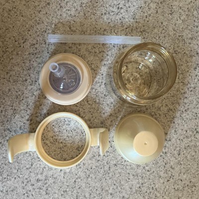 [This review was collected as part of a promotion.] This little sippy cup is the cutest thing! I have a two year old who absolutely loves this cup! He loves putting the lid on and off and he loves holding the handles like a big boy! The handles can come on and off as well. The plastic is stained a yellow color and the sides are labeled with amount of ounces which is really nice. Everything comes a part nicely to be cleaned and is microwave and dishwasher safe! Highly recommend! Tons of color options too! I received an incentive to write this review.
