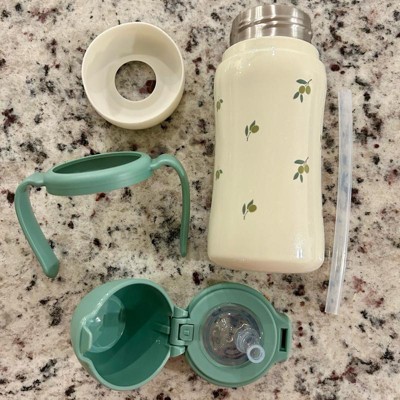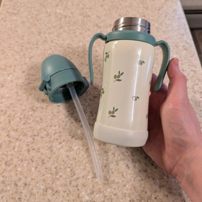 [This review was collected as part of a promotion.] I'm so happy with this stainless steel cup for when my baby becomes a toddler. I like to avoid using plastic for health and environmental reasons so this cup is perfect. I'm always disappointed when a stainless steel cup has a plastic straw so I was so excited to see that this cup has a silicone straw. Not only is the cup durable but it is beautiful. I love that the design of this one, olive pistachio, is gender neutral. You can't tell in the pictures but in person the cup is shimmery and has a slight sparkle which I love.