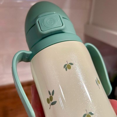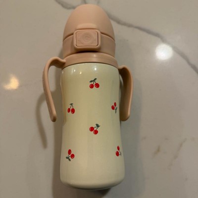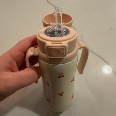 [This review was collected as part of a promotion.] This is a really cute water bottle and feels really well made. I love the shimmer of the outside and the dainty cherries are darling. I don’t love that it’s hand wash only but it’s worth it to have such a cute water bottle for my little girl. The handles are super easy to grasp and the straw is not as directly to drink from as some other cups we’ve tried. Love this!