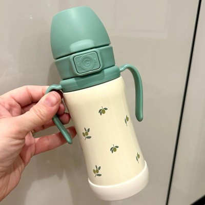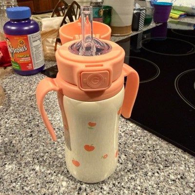 [This review was collected as part of a promotion.] This is a good size stainless steel cup to use around the house or on the go. I can turn it upside down and it will not leak in the straw, only a tiny drop from the vent in the cap. The pattern options are cute and I like that it has handles so it’s easy for my toddler to hold. It fits in a water bottle pocket of my diaper bag as well.