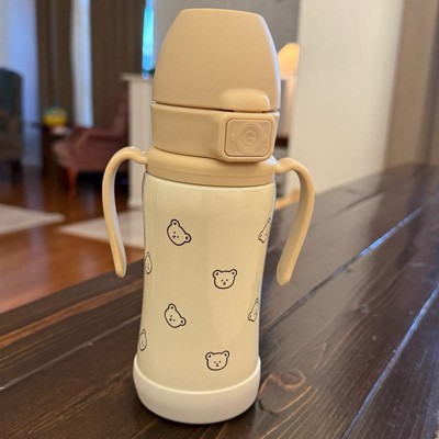 [This review was collected as part of a promotion.] There are so many things to love about this stainless bottle! I love the teddy bear pattern but the others were super cute too. I love the fact that it’s stainless and it has removable handles for little ones to grasp if needed. ! It also has a silicone sleeve that fits on the bottom to protect it from denting.