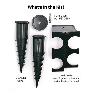 Keep your tiki torches and outdoor poles tidy, secure, and ready for action with this all-in-one Ground Spike & Wall Storage Kit. Designed to simplify seasonal storage and setup, this versatile kit lets you neatly store 2 ground spikes and 2 tiki torches (not included) on any wall—perfect for garages, sheds, trailers, or RVs. When you’re ready to use them again, just twist the rust-proof spikes into the ground with the included drill bit and chuck adapter—no digging required