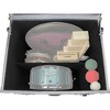 Designed to serve the needs of professional concert percussionists, the Percussion Workstation functions as a portable trap table, multi-arm stand for percussion accessories including cymbals, lockable storage vault, and sturdy road case.Containing padded surfaces throughout, the Percussion Workstation will safely store percussion items including tambourines, triangles, mallets, snare drums, and more than 20 cymbals!A standard padlock (not included) can be used to lock the main latch. Four heavy-duty casters allow to easily roll the workstation into position while the two rear locking wheels assure that it will stay put on stage.This innovative product is constructed to provide many years of trouble-free service in the concert hall AND on the road. After all, it’s from Grover Pro, world leaders in high-quality percussion products!