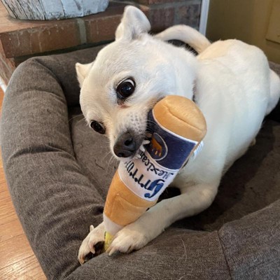 [This review was collected as part of a promotion.] You know this one is gonna be a hit for your dog or a gift - it comes complete with the lime on top! This XL beer inspired dog toy as you can see is perfect for big dogs. Featured is a doodle so they are a very large dog and this is plenty big to play with. If I’m being honest the toy is pretty pricey and while cute and durable, it’s a dog toy, it’s going to get ruined/dirty at some point. We love the toy, it’s great and still squeaks so isn’t super easy to destroy. I received an incentive to write this review.