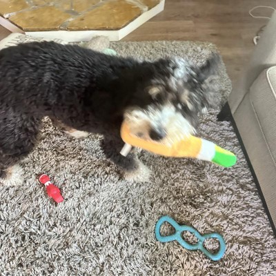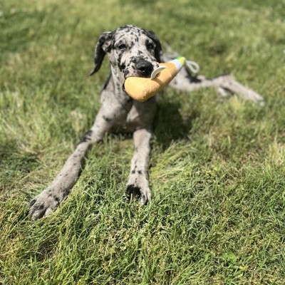 [This review was collected as part of a promotion.] This is my dogs new favorite toy! It’s made from good quality plush material that is so soft. He has yet to destroy it with all the tossing around he does. He loves the squeaker in it too. Overall this has kept him entertained for hours already. I reccomend this to others to buy for their puppy. It is a fairly large sized toy as well so I do reccomend for medium size dogs or larger. I received an incentive to write this review.