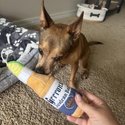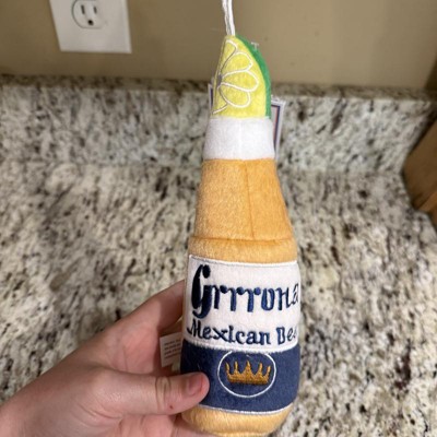 [This review was collected as part of a promotion.] The Haute Diggity Dog Grrrona Beer Bottle squeaky dog plush is adorable - I love the design!!! The fact it has a lime with it make it all the better! The toy is life size to that of a standard beer bottle and made from high quality fabric making it more difficult to chew through. The squeaker has a different type of sound so I’m glad to offer some noise variety for my pooch! He’s been playing with it all afternoon so it’s great in my book! Highly recommend! I received an incentive to write this review.