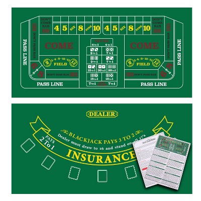 GSE 36"x72" Craps Layout Felt with Instructions, Las Vegas Style Casino Dice Game Tabletop Mat