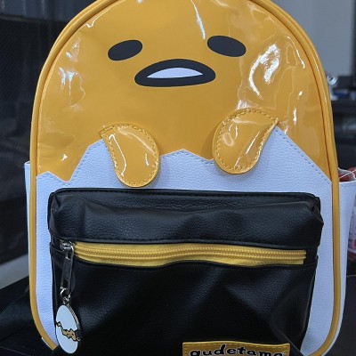 - Junior Womens Mini Backpack Design: This mini backpack purse is "So Eggstra"! The compact design features a big face Gudetama with color blocking, patent PU details, stitched appliques. It has a main zipper compartment and a front zip pocket with a metal epoxy filled charm zipper pull of Gudetma.