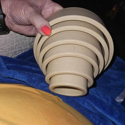 [This review was collected as part of a promotion.] My baby love it. It's make out of hard and heavy material. Love how it's from small circle to big one. She can play as build, play in the sand, make a nest. The value of the material comes with the quality of the product.