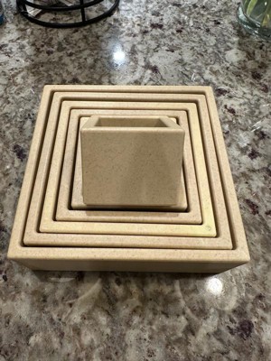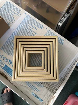 An upgrade from the classic nesting toy, the extremely resilient and durable pieces in the Discovery Squares - Natural set enhance open-ended play indoors and outdoors. Children ages 2 and up can stack, balance, create patterns and learn about shapes and colors while experimenting and exploring using this set. A perfect companion to building activities, loose parts play or traditional block play, this vibrant toy set bridges the gaps between various play patterns. Combine with other Discovery shapes and stacker sets (sold separately) to expand possible play outcomes.