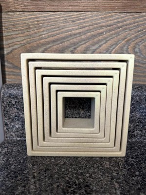 - Largest square measures 6in x 6in x 3in, smallest square measures 2.46in x 2.46in x 3in