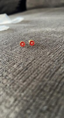 Guili 14k Gold Plated Clear Cubic Zirconia & Red Enamel Flower Stud Earrings, Elegant and Vibrant Jewelry with a Sparkling Floral Design