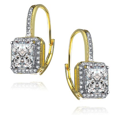 Guili 14K Gold Plated Cubic Zirconia Halo Leverback Earrings Featuring Sleek Elegant Design Perfect for Jewelry Enthusiasts and Occasions