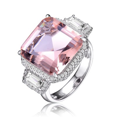 • Design: A stunning solitaire design with a clear cubic zirconia, enhanced by a halo of round and baguette-cut cubic zirconias.
