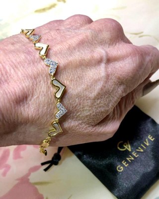 Elegant Details: Alternating cubic zirconia stones and delicate mother-of-pearl heart accents create a balanced and sophisticated design.