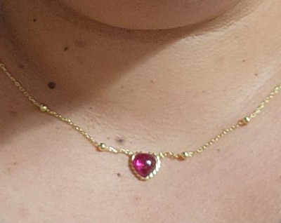 Heart-Shaped Centerpiece: A stunning ruby red cubic zirconia in a delicate scalloped bezel, adding a romantic touch.