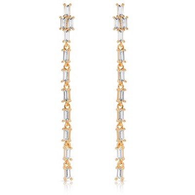 Guili Elegant Sterling Silver Cubic Zirconia Linear Fringe Icicle Earrings for a Sparkling and Sophisticated Look