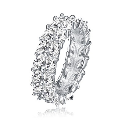 Guili Elegant Sterling Silver Rhodium Plated Band Ring with Cubic Zirconia for a Timeless and Sophisticated Design with Brilliant Sparkle