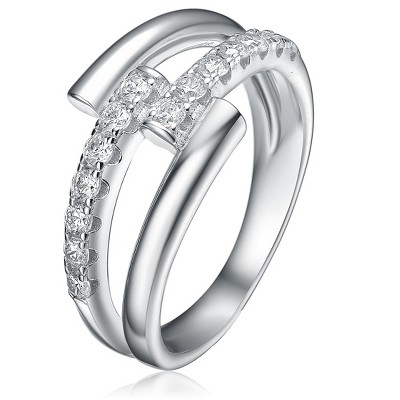 Design: A unique bypass ring featuring two bands, one adorned with a clear pear-cut cubic zirconia and the other with a striking yellow pear-cut stone.
