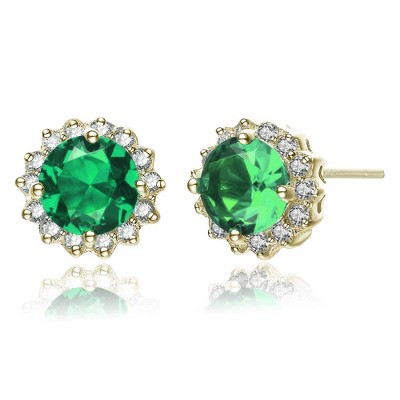 Guili Wasp Sterling Silver 14K Yellow Gold Plated with Emerald or Sapphire Cubic Zirconia Pave Stud Earrings for a Bold and Stylish Statement Look