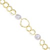 Very Elegant Sterling Silver 14k Gold Plating with Genuine Freshwater Pearl Chain Bracelet. This sophisticated and minimalist bracelet features 14k gold plated metal chains adjoined together and two round Freshwater pearl that accents the piece. Crafted in .925 Sterling Silver, the jewelry is secured with a spring clasp. This bracelet is ideal for a semi-formal or formal event. It also makes a sensational present for an ocassion. Measurement 7.5+1 inch