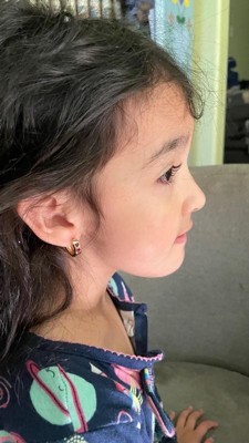 [This review was collected as part of a promotion.] This is the super cute design as they are golden hoops with pretty pink stones that are in the shape of a heart. These are look super cute on any little girl and they look of high quality. I would highly recommend this product