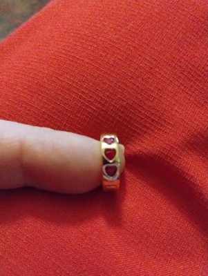 - Design: Features a triple-stone design with heart-shaped pink cubic zirconia for a romantic look.