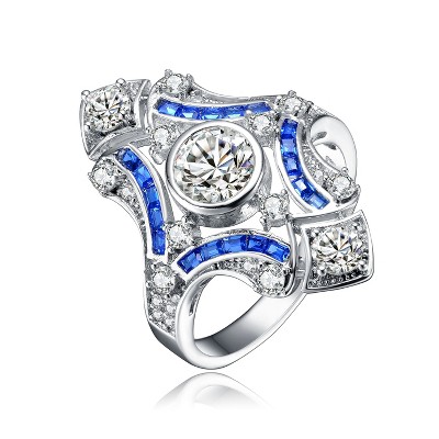 • Design: Features a chunky eternity band with alternating sapphire cubic zirconias and round brilliant-cut cubic zirconia stones.