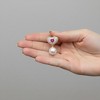 - Design: Heart-shaped design features large ruby red cubic zirconia accented with clear stones, complemented by a lustrous freshwater pearl.