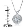 Make a lasting impression with this radiant clear cubic zirconia pendant, featuring a large, brilliant center stone encircled by a halo of smaller sparkling accents. Expertly set in highly polished sterling silver, the elegant design amplifies the brilliance of each stone, catching the light from every angle. Whether paired with casual attire or formal wear, this pendant adds a touch of timeless glamour and sophistication, making it a captivating accessory for any occasion.