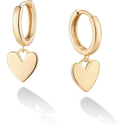 Guili Sterling Silver 14k Gold Plated Two-Stone Heart Dangle Earrings with Colored Cubic Zirconia, Elegant & Versatile for Any Occasion