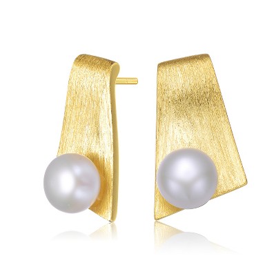 Guili Sterling Silver Gold Plated Earrings featuring 5.5MM Freshwater Pearls, showcasing minimalist and timeless elegance for every occasion