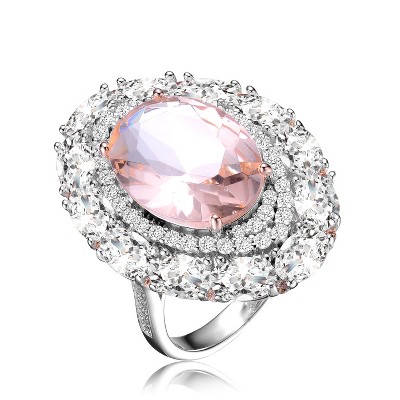 Guili Sterling Silver Rhodium-Plated Baguette and Round Cubic Zirconia Double Halo Cluster Ring, Elegant Design, Ideal for Special Occasions, Size 6