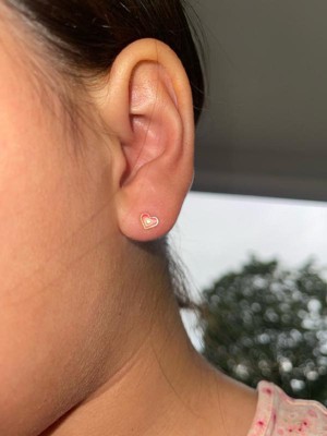 Guili Toddler/Kids 14K Gold Plated Pink & White Enamel Heart Shaped Stud Earrings, Sweet and Charming Jewelry for Little Ones
