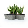 Transform your indoor and outdoor spaces with the Gulches 2-Pack Gray Hand-Woven Wicker Self-Watering Rectangle Planter. These planters blend classic design with modern convenience, featuring a self-watering system that keeps your plants hydrated for up to a week. Certified by the Global Recycled Standard, they are an eco-friendly choice for the environmentally conscious. With dimensions of (S) 15.3" x 7" x 6.3" and (M) 22.8" x 7.9" x 7.5", these planters are perfect for a variety of plants, adding elegance and tranquility to any setting.