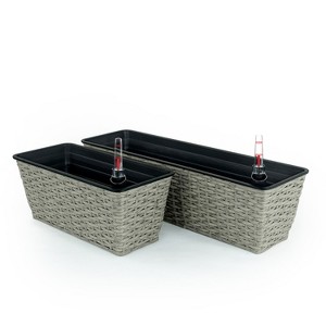 Gulches 2-Pack Gray Hand-Woven Wicker Self-Watering Rectangle Planter