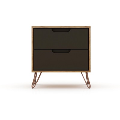 Gulches 20" Rustic Gray Fluted Nightstand, 1 Full Extension Drawer with Gold Metal Handles & Legs, MDF Bedside Table (20.07"L x 17.73"D x 21.65"H)