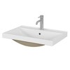 This product is a 24 inch bathroom vanity sink top with an undermount ceramic basin made of high quality ceramic with a glossy white finish it features a 2 inch thickened basin and does not include faucet or drain the dimensions are 24 inches length 15 inches width 6 inches height weight 30 pounds crafted with a 2 inch thickened ceramic basin it boasts exceptional durability and sturdiness the high quality ceramic material resists scratches stains and daily wear ensuring long lasting performance and maintaining a pristine appearance even with frequent use it features a timeless glossy white finish that exudes modern elegance effortlessly complementing various bathroom decor styles from contemporary minimalism to classic charm it adds a bright clean vibe to your bathroom space elevating the overall visual appeal designed with a 24 inch dimension this sink top is ideal for small to medium sized bathrooms powder rooms or guest bathrooms its compact yet functional design maximizes countertop space while meeting daily hand washing and grooming needs the smooth ceramic surface is ultra easy to clean simply wipe with a damp cloth to remove dirt and grime it also has excellent water resistance and mildew resistance keeping your bathroom hygienic and low maintenance please note that this product includes only the 24 inch vanity sink top with the thickened ceramic basin faucet and drain are not included allowing you to customize your bathroom setup with your preferred fixtures to match your unique style whether renovating a small bathroom or upgrading a guest bath this sink top balances durability style and practicality offering a reliable and aesthetically pleasing solution