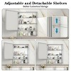 Gulches 24x30 inch silver medicine cabinet with mirror is a durable safe and functional bathroom storage solution crafted from high quality aluminum alloy it is wear resistant corrosion resistant and formaldehyde free ensuring family health and safety the cabinet door features buffered silent hinges for easy noiseless opening and closing it merges a high definition mirror with storage function delivering clear realistic reflections and ample space to store toiletries skincare products and cleaning supplies keeping the bathroom organized the three layer storage rack has flexibly adjustable shelf height to fit personalized storage needs wall mounted surface mount installation saves precious floor and countertop space effectively optimizing the bathroom s storage layout and daily usability