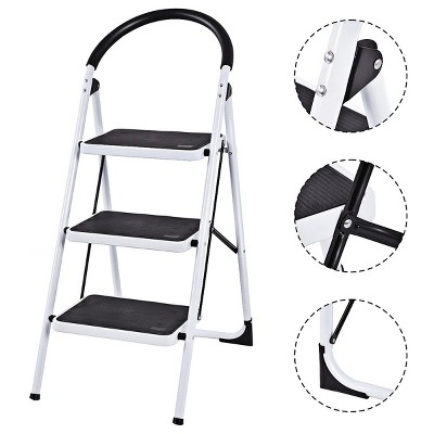 Gulches 3 Non-slip step ladder, quick folding steel ladder Sturdy metal supported household tools for home/office work at altitude, portable step tool