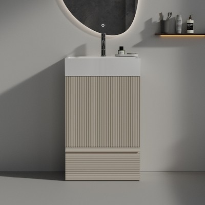 - This bathroom vanity includes three large capacity drawers and one cabinet door providing ample storage space for bathroom essentials The drawers feature high quality sliding rails for smooth and silent operation allowing you to classify and store toiletries cleaning tools and other items to keep the countertop tidy