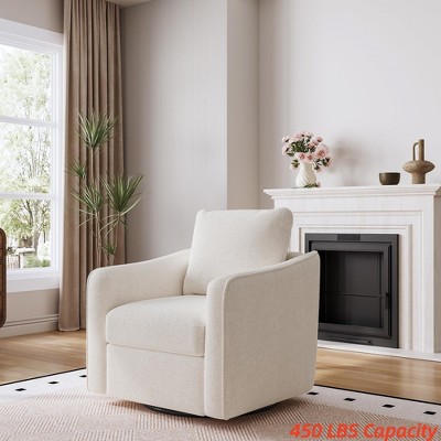 Gulches 360° Swivel Accent Chair White Chenille Comfy Armchair with USB+TYPE-C Charging, Book Pocket,Under-Seat Storage, 300lbs