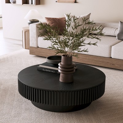 Gulches 39 Inch Round Coffee Table Black Solid Wood Veneered Modern Hidden Storage Accent Tea Table for Living Room Bedroom Office Apartment