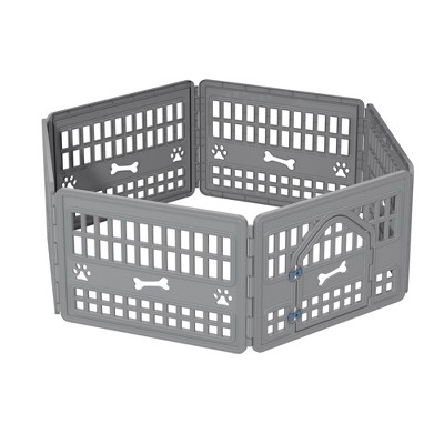 Gulches 4 Panel Pet Playpen Lockable Pet Door Spacious Enclosure Firm Bottom Anti Topple Easy Setup Super Portable Gray