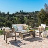 Gulches 4PC Acacia Wood Chat Set with Water-Resistant Cream Gray Cushions Includes Loveseat, 2 Club Chairs and Coffee Table