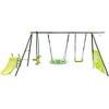 Gulches 6-Function Outdoor Swing Set for Ages 3 - Green & Blue, 440lbs Capacity, 31.5in Net Saucer Swing, Slide, Climbing Wall